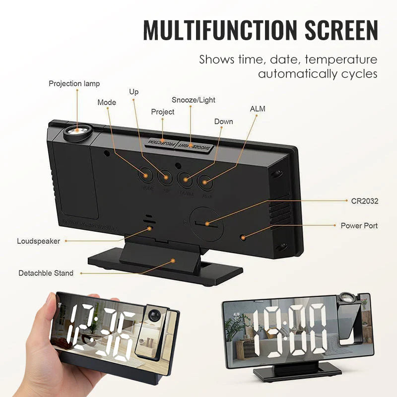 SVESTRANA PROJEKCIJA â Ovaj budilnik ima znaÄajku projekcije koja projicira vrijeme na zid ili strop. Projekcija ima dvije postavke svjetline i rotaciju od 180 stupnjeva, ĆĄto korisnicima omoguÄuje da postave prikaz vremena toÄno tamo gdje im je najugodnije gledati iz razliÄitih kutova. To je jasan i praktiÄan naÄin provjere vremena bez potrebe za okretanjem da biste pogledali na sat.