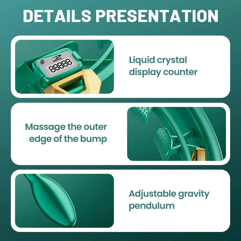 VIBRACIJSKI ČVOROVI – Opremljen s 16 vibracijskih zglobova i ukupno 896 masažnih čvorova, obruč pruža preciznu stimulaciju području struka. Čvorovi oponašaju profesionalne masažne tehnike, otklanjajući napetost i aktivirajući trbušne mišiće. Vibracije su uravnotežene kako bi se osigurala udobnost uz maksimiziranje učinka svake rotacije, jamčeći zadovoljavajuće i osnažujuće iskustvo tijekom svake sesije.