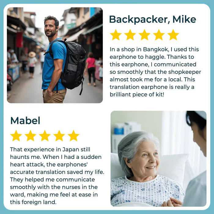 Naše slušalice omogućuju vam jednostavno prevođenje i komunikaciju s drugima u stvarnom vremenu jednostavnim davanjem jedne slušalice partneru, ona će prevesti razgovor između vas.
