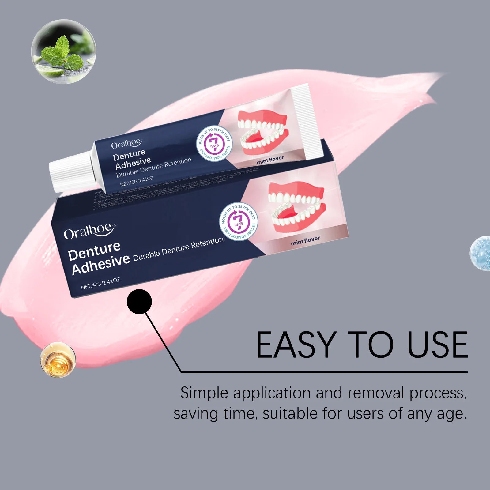 AdhereDent® ne sadrži cink, netoksičan je i napravljen je od biološki kompatibilnih materijala, što ga čini idealnim za korisnike s osjetljivim ustima ili za one kojima su proteze potrebne dugoročno. Njegova blaga formula smanjuje iritaciju desni, istovremeno pružajući sigurnu, cjelodnevnu vezu koja se osjeća jednako ugodno kao i što dobro funkcionira.