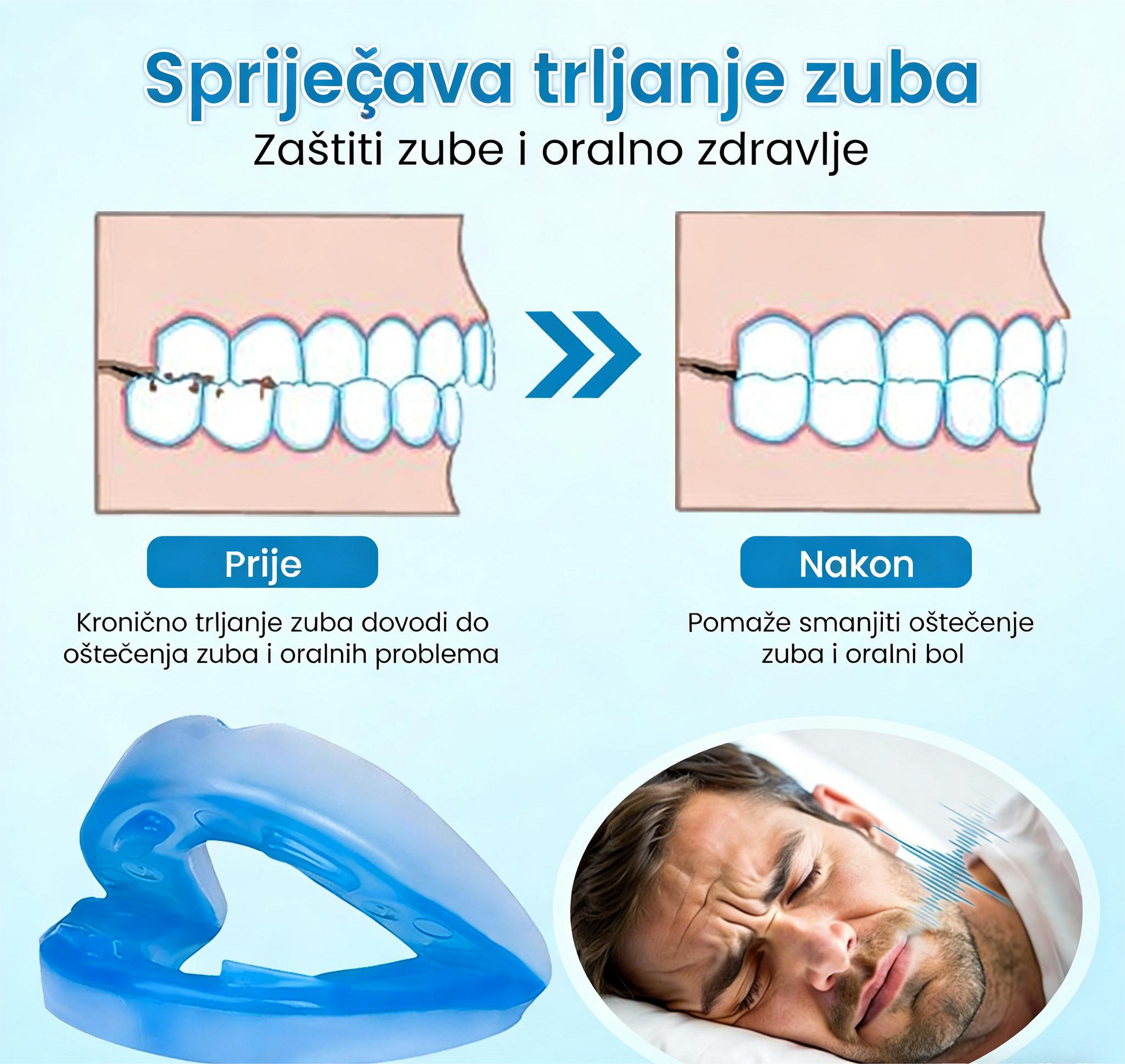 Nakon upotrebe, isperite nastavak za usta hladnom vodom, osušite ga i spremite za sljedeću noć.