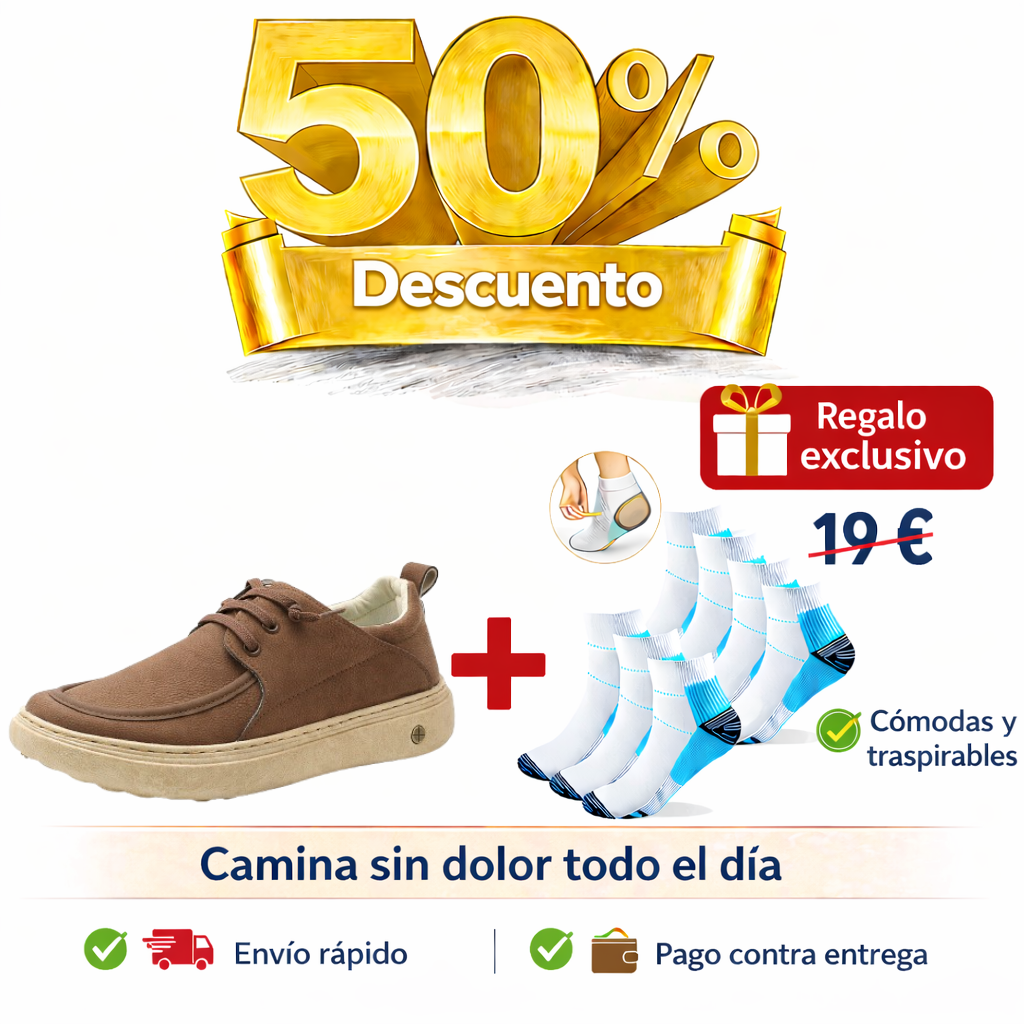 ✅ Haz tu pedido hoy y recibe un par de calcetines ortopédicos premium (para aliviar el dolor de pies) valorados en 19 €.