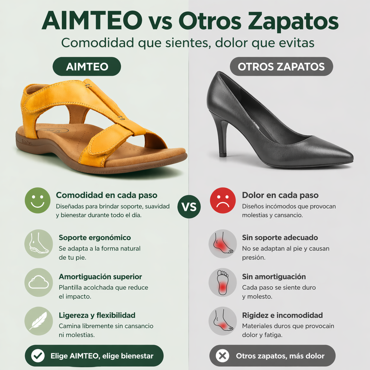 | Suela flexible sin soporte rígido | ✔ | ✖ |